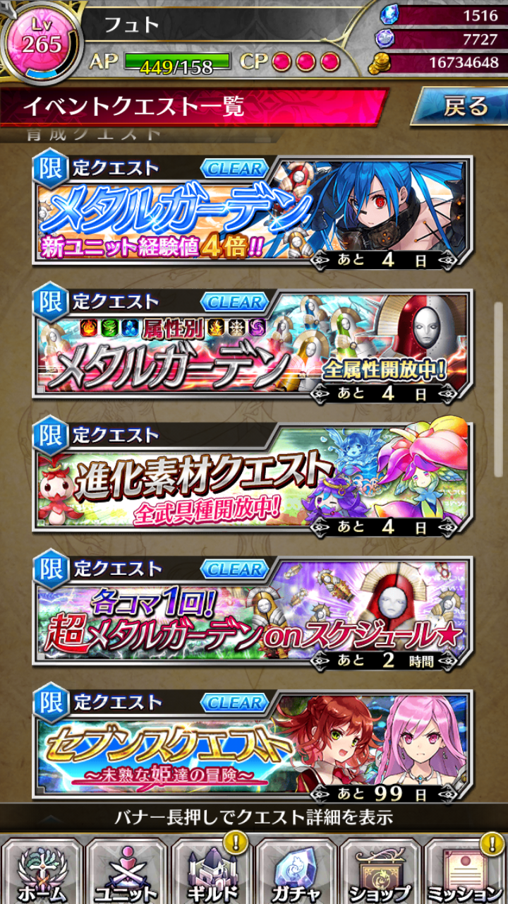 ただ、このメタルガーデンを出すには確かセブンスクエストを最後までクリアしないといけません。