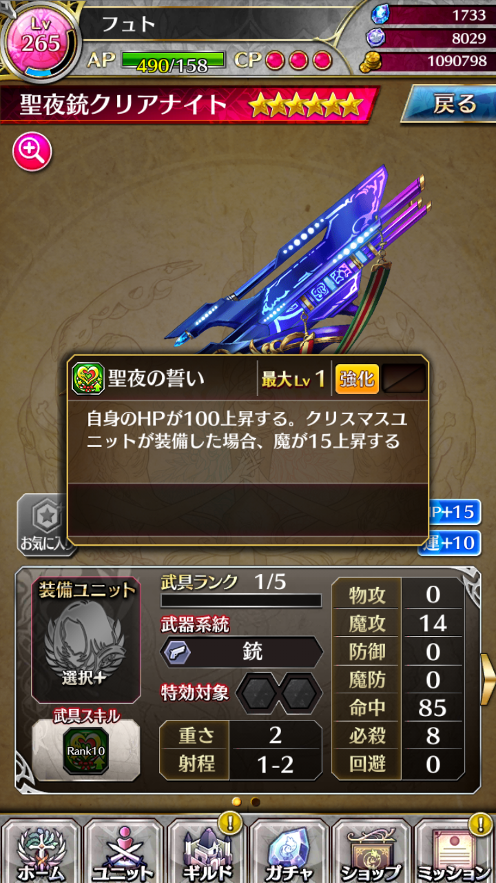 クリスマスイベントで作れる聖夜銃クリアナイトが中々に強いですね!