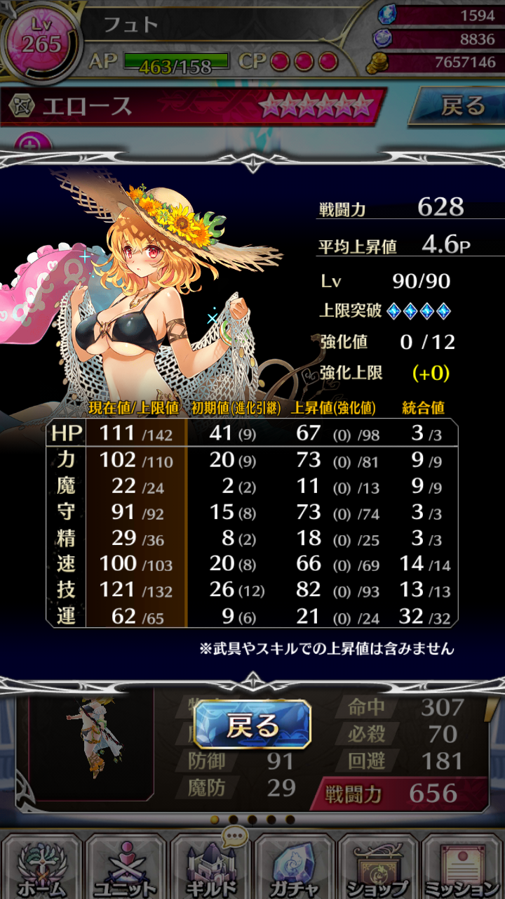 特徴としては弓なのに防御が高いことです。