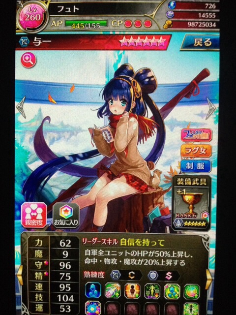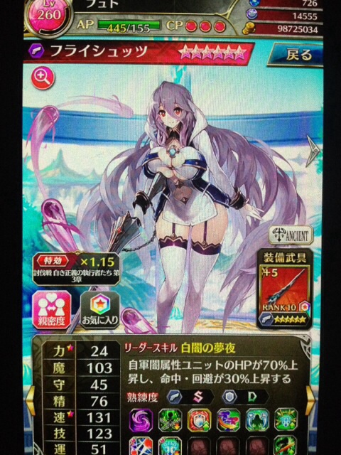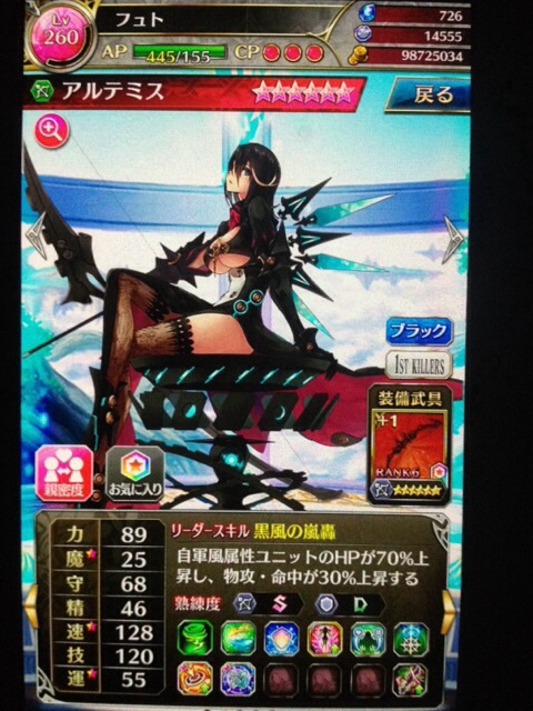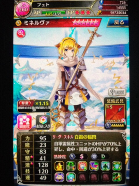 全員の守強化をするスキルが役に立ちます。黒アルテミスのスキルと二重掛けすればミネルヴァとこの子は守100近くなります!カチカチです(^ω^)