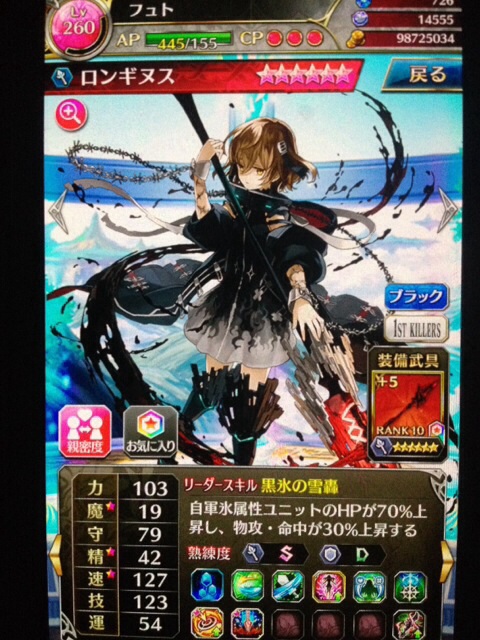 匠姫。剣キャラ対策に入れてます。ラグナロクにも100%命中します。すごくいい仕事します!